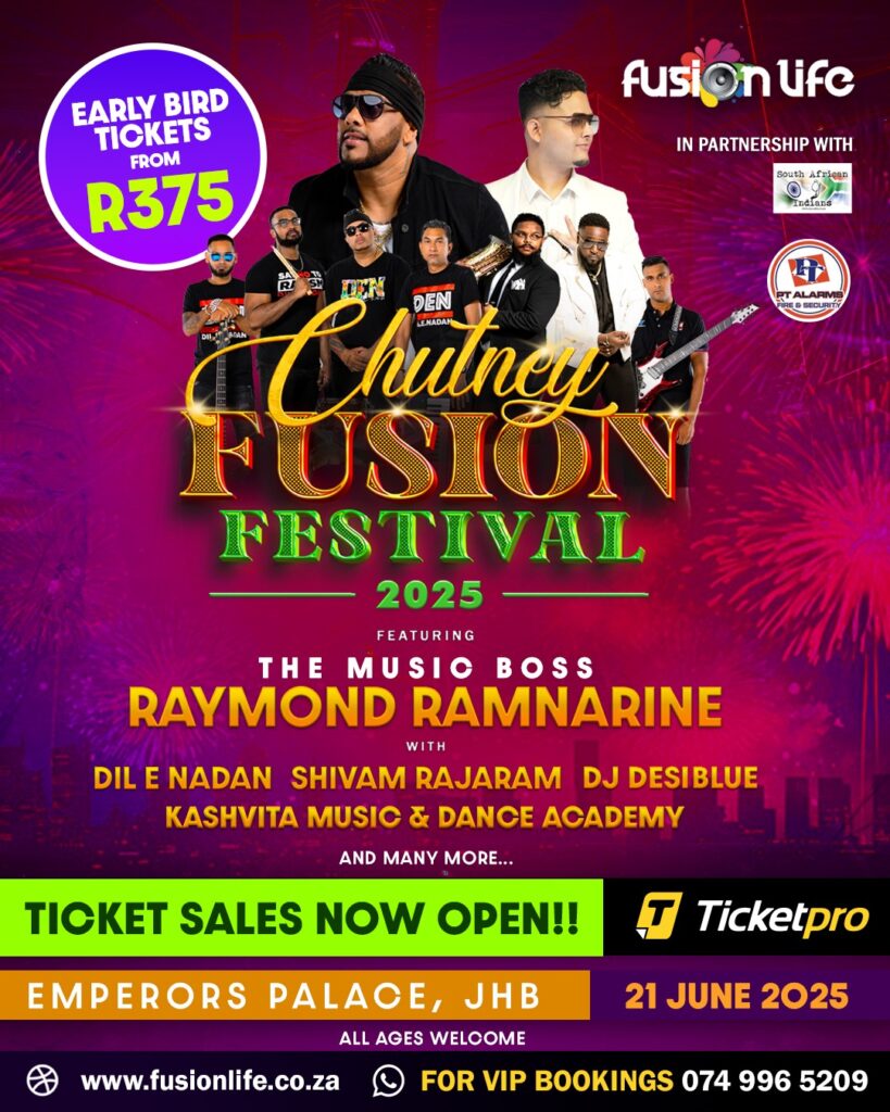 The Fusion Life Chutney Festival is set to electrify South Africa with a series of events celebrating the vibrant fusion of Chutney Soca and Bollywood music. Following the success of last year’s performances, the festival promises an even grander experience in 2025.